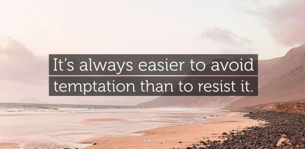 You don’t have to be stronger than temptation. You just have to avoid it.