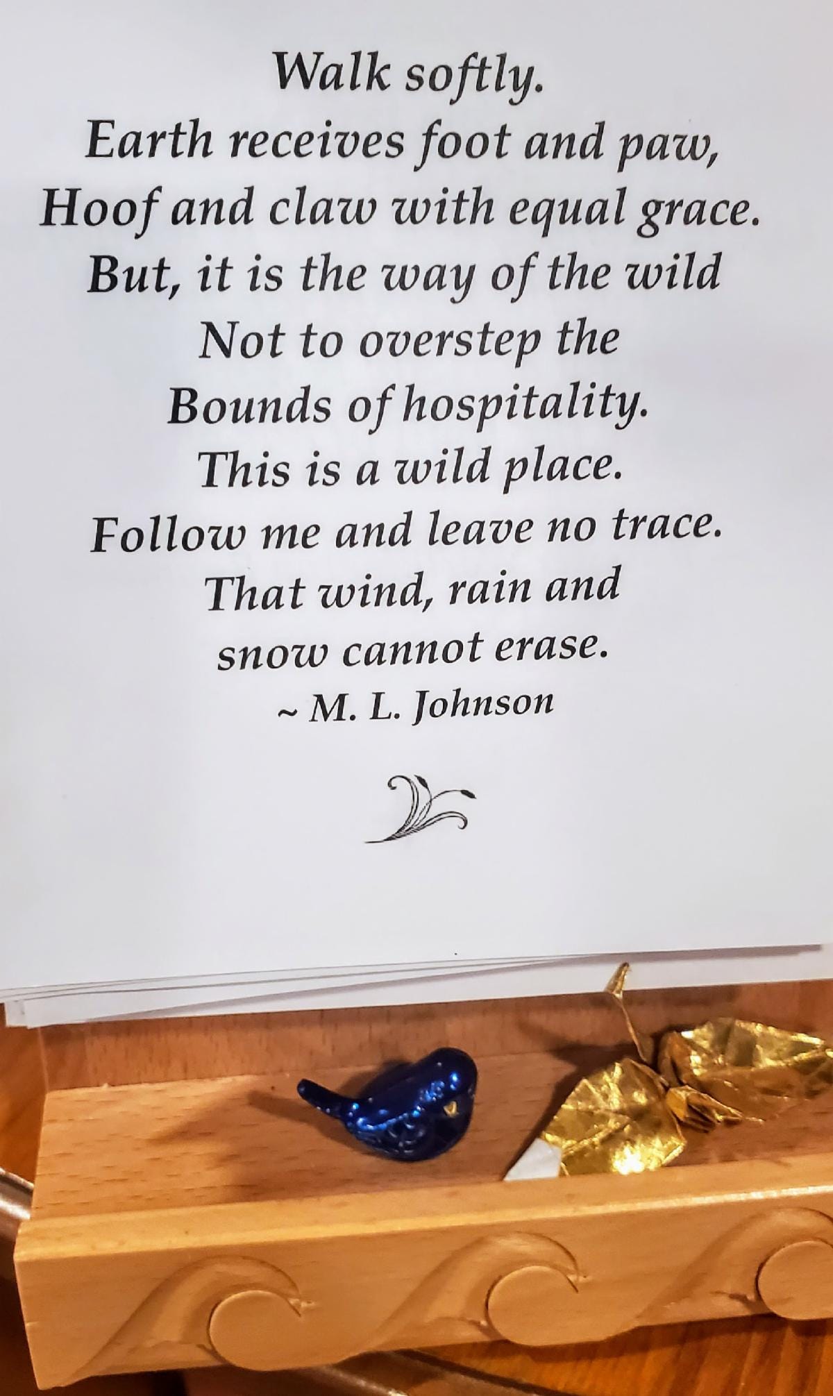Following the poem’s guidance, the practice of “walking softly” can transform and ground anew our approach to well-being. And not just in our physical wanderings but in our emotional and spiritual journeys, as well.